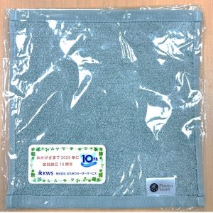 清掃活動への参加だけでなく、協賛品として、会社設立10周年を記念したミニタオルを参加者に配布し、好評でした。